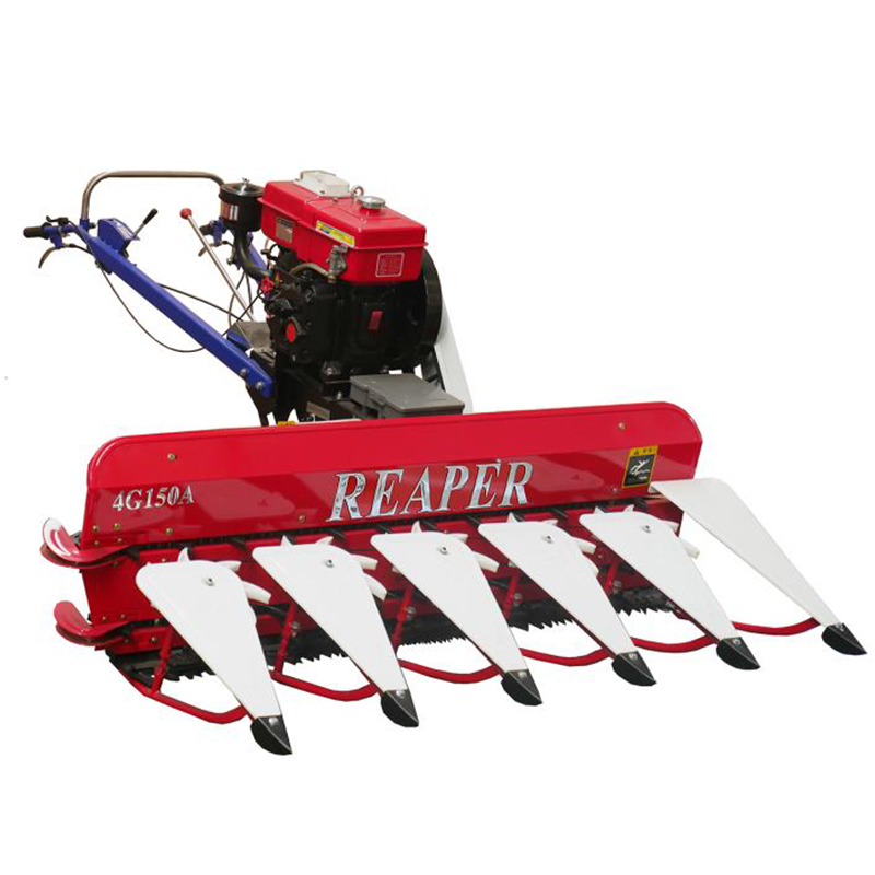 稻麦微型割晒机,该机具有结构简单、合理、操作维修方便,体积小、重量轻、能耗低、性能稳定、可靠性好、适用性强等特点。特别适用于小地块、山地、丘陵及需要秸杆利用地区的水稻、三麦以及大豆,芦苇的收割。